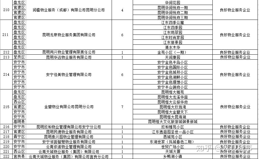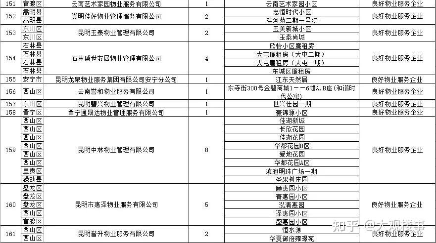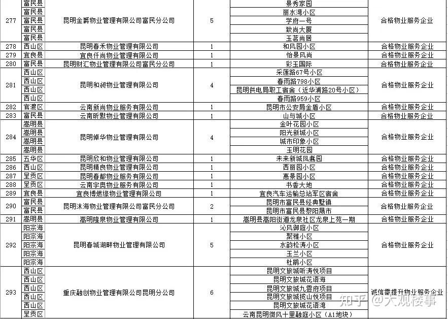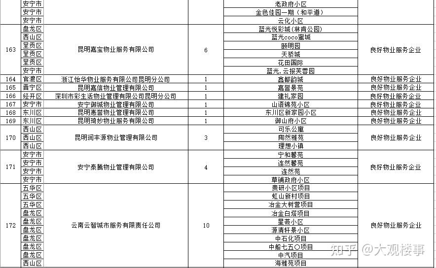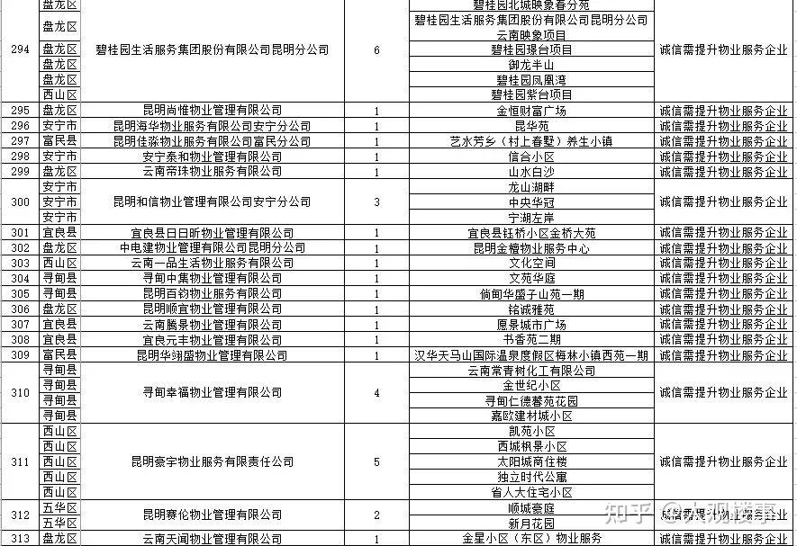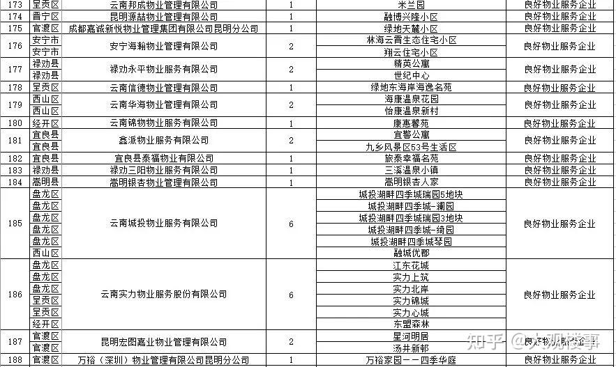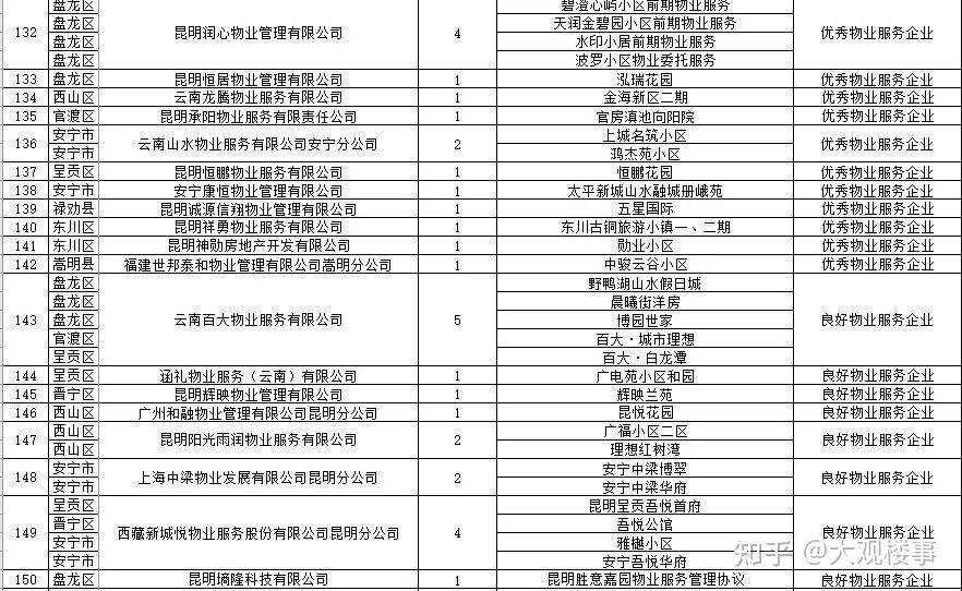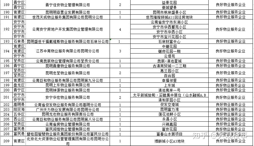 从此次公布的名单来看,综合评价后,全S示范物业办事企业共有14家,其代表着目前昆明物业办事的较好程度。详细为: