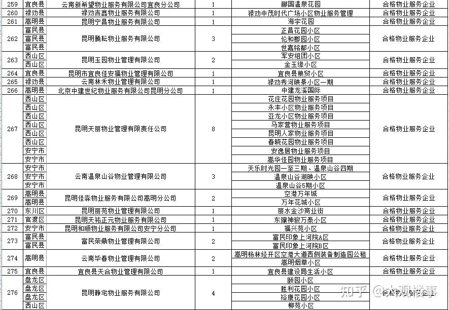昆明嘉家物业办理有限公司:北豪家园、华夏御府怡璟苑、金地苑小区、云南S无线电监测中心、红星紫郡1.2.3幢