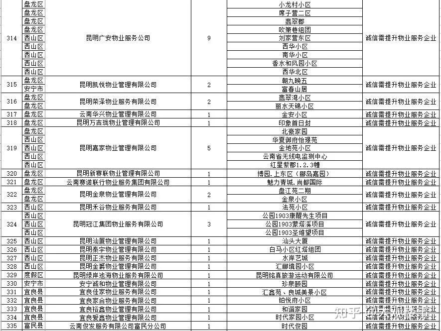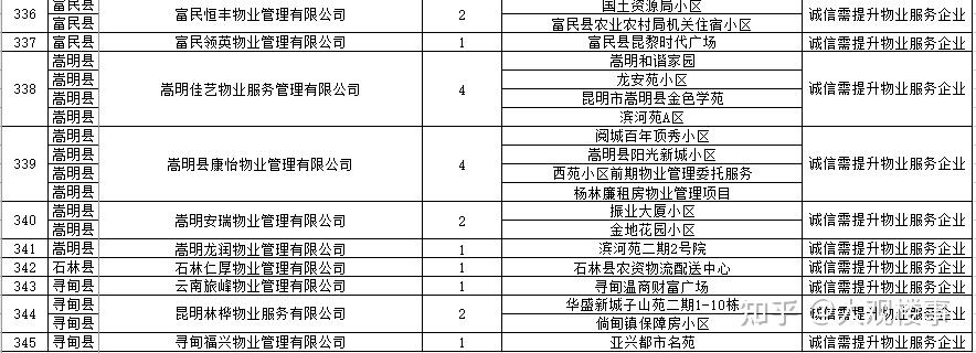 栖身小区物业办事企业信誉品级评价,是由企业自愿申报,并未涵盖昆明所有栖身小区。有的存在无效信息情况,有的则是企业办理办事多个项目,只愿申报部门小区,以至不申报。