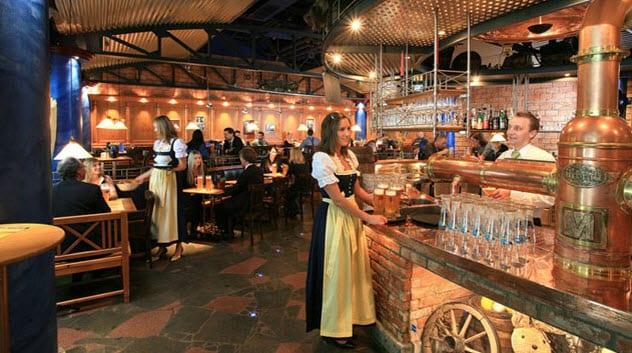 慕尼黑机场拥有世界上独一的机场酿酒场,就是坐落在慕尼黑机场中心、巴伐利亚啤酒花园旁边的Airbrau。店内有自酿啤酒的安装,店外则是有树有花的露天餐座。