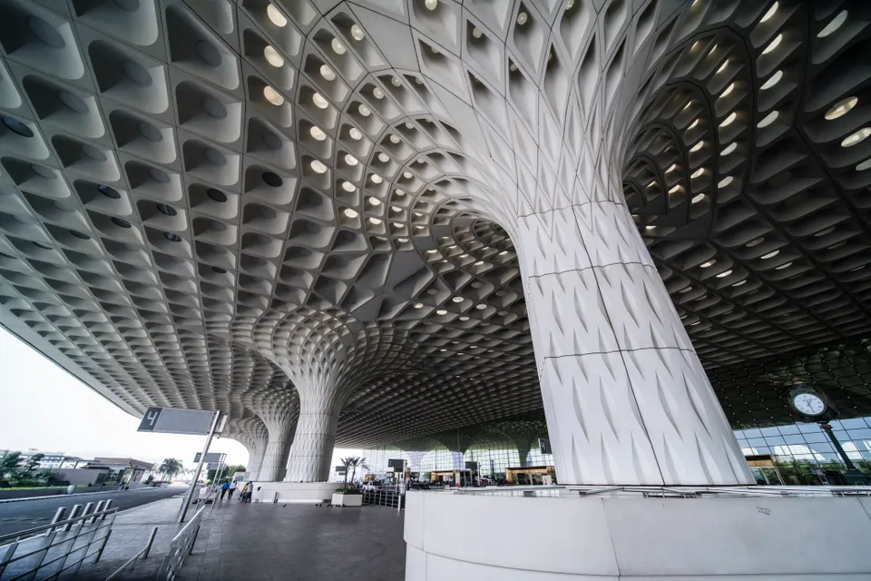 印度孟买贾特拉帕蒂·希瓦吉国际机场(Chhatrapati Shivaji International Airport)航站楼顶篷的图案部门受该国的国鸟孔雀的启发。由美国公司SOM设想的,既参考了传统印度建筑的露天凉亭,又参考了孔雀尾巴上的羽毛摆列。