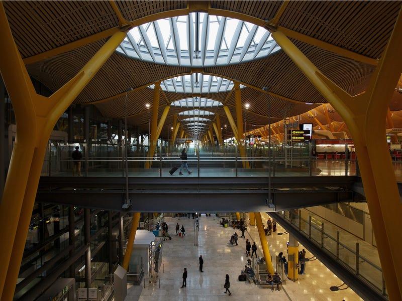 西班牙更大的机场、位于该国首都马德里的里巴拉哈斯机场(Adolfo Suarez-Madrid Barajas)。2006年,巴拉哈斯机场启用了第4航站楼,那是一个庞大而华美的航站楼,设有竹天花板。
