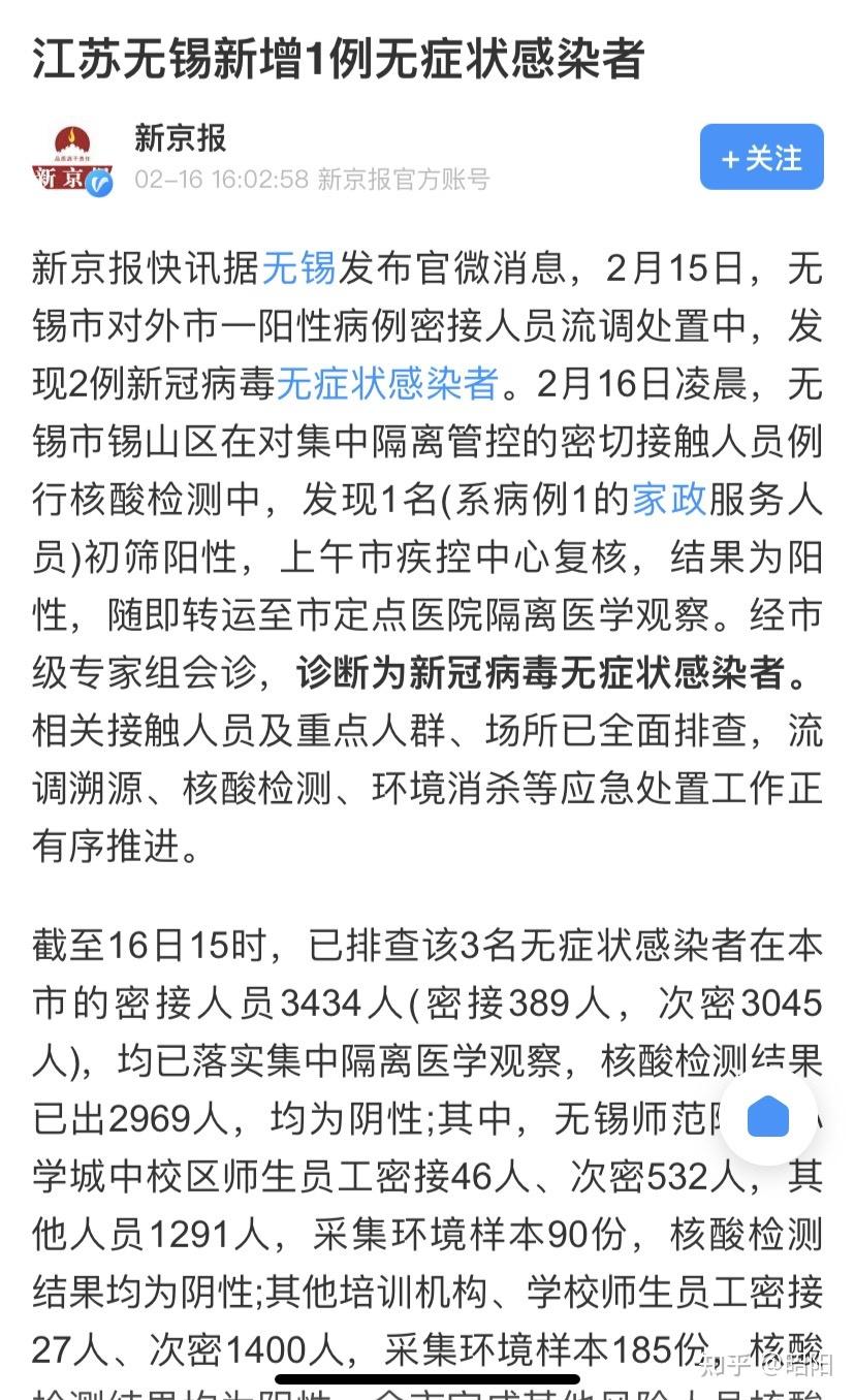 更新:2月16日凌晨无锡新增无症状传染者1位,累计3例。苏州外溢的疫情在无锡进一步扩大