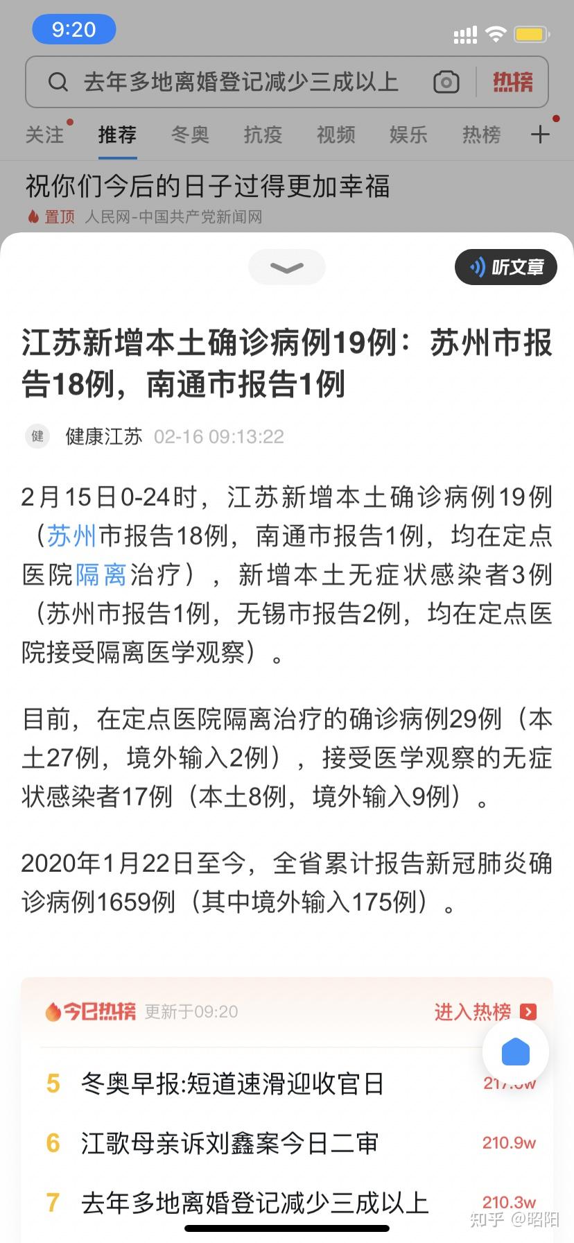 2月16日:2月15日0—24时江苏新增确诊病例19例,此中苏州18例,南通1例。另有无症状传染者3例,此中苏州1例,无锡2例。
