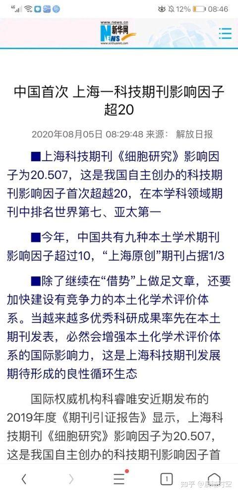 科研期刊范畴,上海的《细胞研究》,20.507的影响因子全国遥遥领先的第一,超越了 Nature Cell Biology、Science Translational Medicine、Molecular Cell 等CNS子刊。在全球195种细胞生物学范畴期刊中世界排名第五,亚州地域生命科学范畴学术期刊排名第一。另一本上海原创学术期刊《分子动物》本年影响因子到达12.084,已经持续四年超越美国动物生物学家学会主办的《动物细胞》杂志,居于全球该范畴颁发原创论文期刊的第二位。2020年中国共有九种本土学术期刊影响因子超越10,“上海原创”期刊占据1/3全国第一。除《细胞研究》外,《纳微快报》《分子动物》影响因子打破12,别离位各国内纳米学科类第一名、世界动物科学学科类第二名。此外,《运动与安康科学》创刊8年即跻出身界体育学期刊前五,《光子学研究》在世界光学期刊中排名第十,《应用数学和力学》《计算质料学》《中国药理学报》《转化神经变性病》等均跻身本学科范畴世界前列。