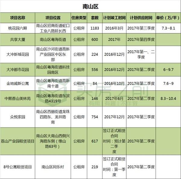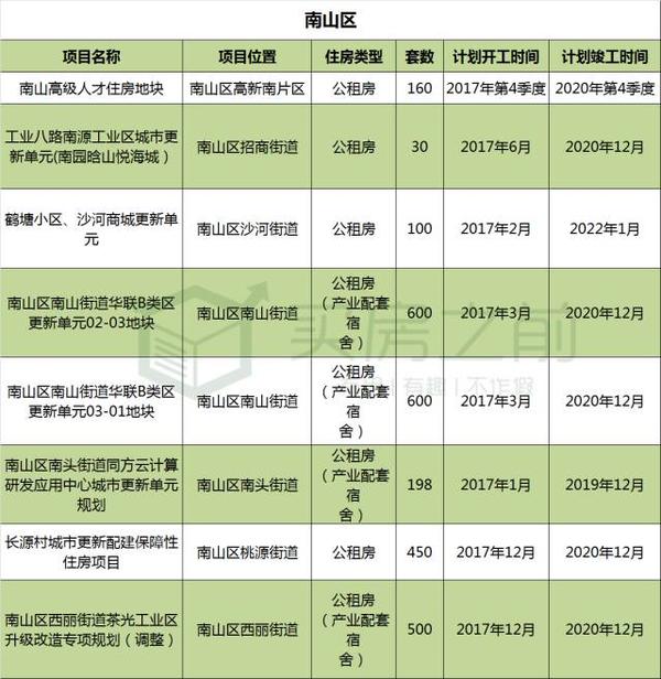 最初附上本年南山、福田、罗湖三大中心区域保障房方案一览表~