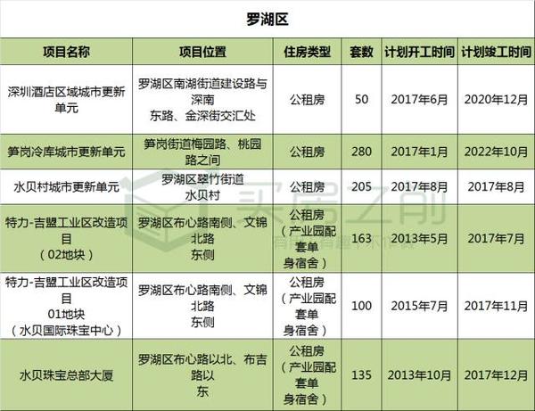深圳S原特区内2017年方案开工筹建保障房列表: