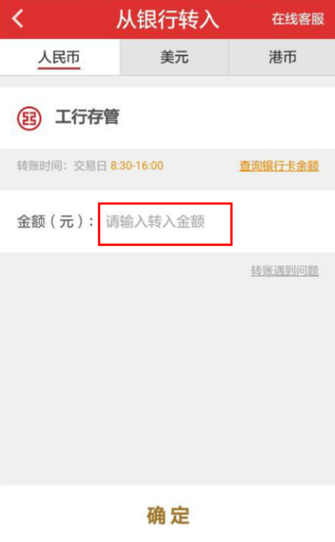 第四步:输入详细金额,就能够把资金从我们的托管账户汇入股票账户,停止交易。