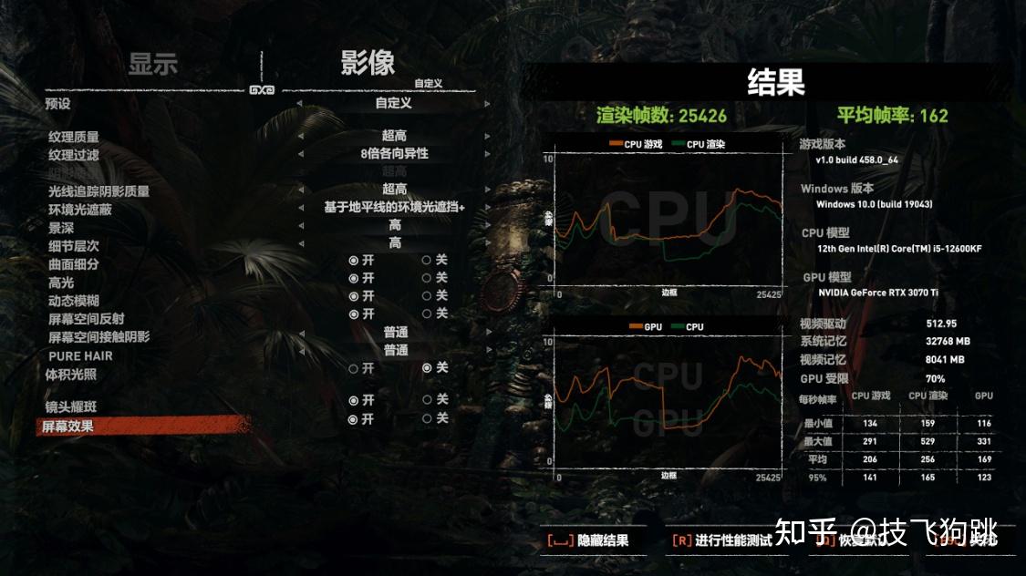 《古墓丽影·阴影》基准测试中,画量设为更高,光逃设为超高,DLSS设为超强性能,2K分辩率下,游戏的均匀帧率能够到达162FPS;