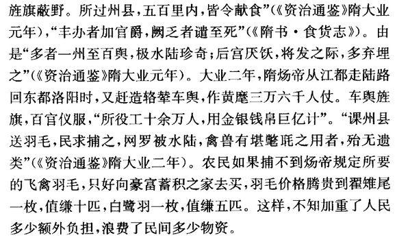 并且,现实正如前面列举的史料所说的,大业中年隋朝已经“国用不敷”、大业末年已经“无以收给”、“苍生委靡,府藏空竭”。