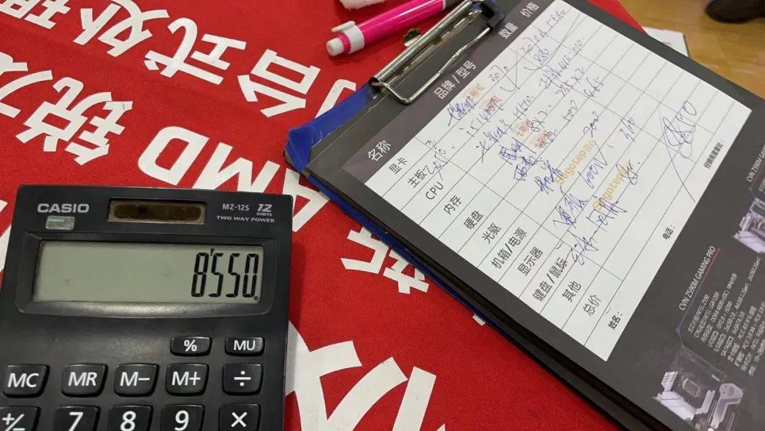 ——来来来,我先跟你算,你看啊,你那要上3070,就七彩虹的,起码就要5500,对吧?CPU你要不要11代的,不要?那就i510400,也够用,主板就华硕的H510,内存和硬盘呢,你有没有喜好的?内存威刚的吧,那个能够S点,8G两根235×2,硬盘呢?西数?能够,固态500G如今465,很廉价,机箱有要求没?没是吧,灯那些都不消是吧,那就200以内,你那个电源,600瓦够了,电扇就玄冰400,压10400绝对压得住,行了,差不多八千五,我收你300拆机费,八千八,怎么样?