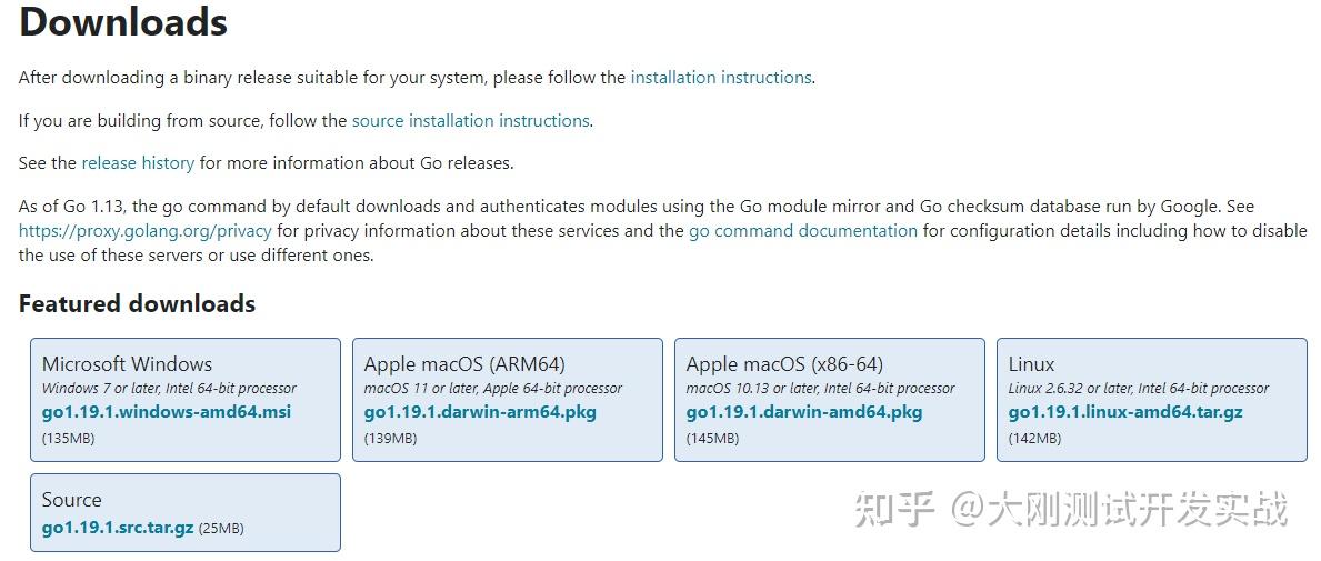 https://golang.google.cn/dl/,选择对应系统下载文件