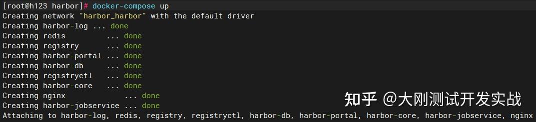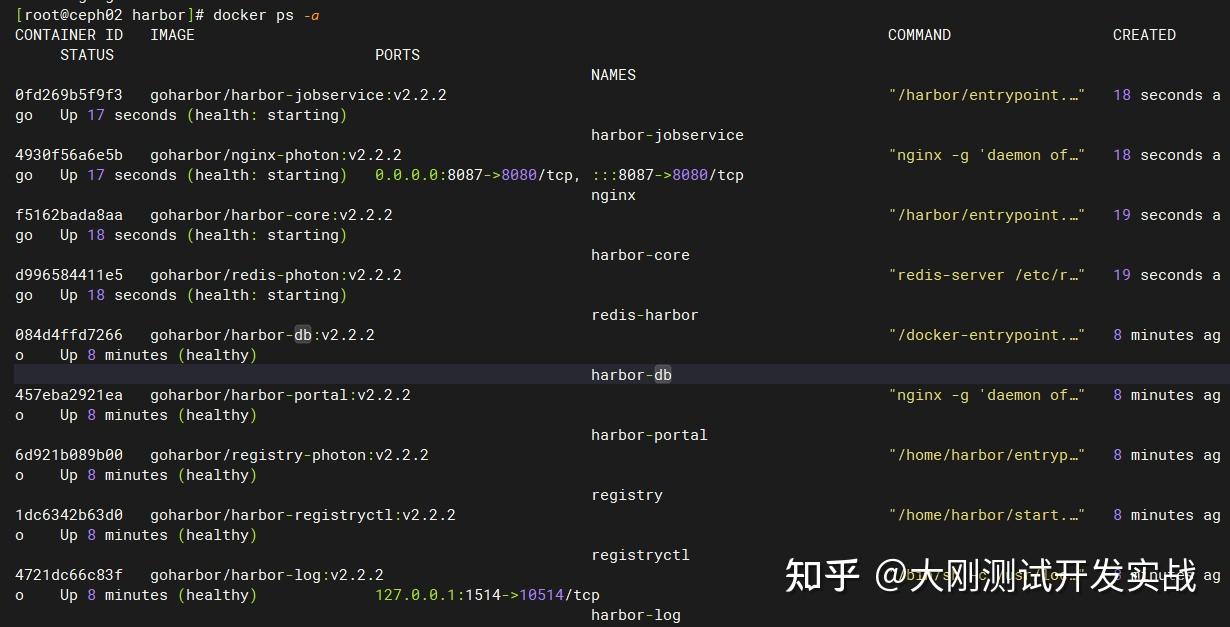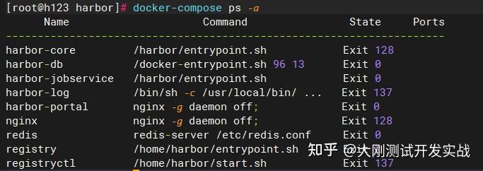 docker-compose up -d查看harbor各个容器形态: