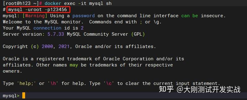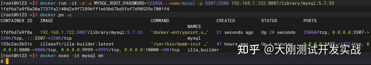 创建容器docker run -it -d -e MYSQL_ROOT_PASSWORD=123456 --name=mysql -p 3307:3306 192.168.1.122:8087/library/mysql:5.7.33