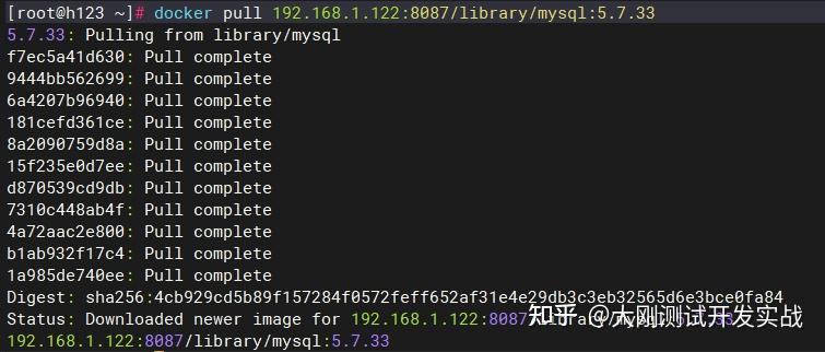 ⑤ 从Harbor拉取镜像拉取镜像docker pull 192.168.1.122:8087/library/mysql:5.7.33从下图能够看出,MySQL镜像已经拉取胜利