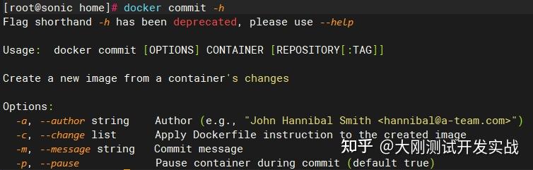 用法:docker commit [OPTIONS] CONTAINER [REPOSITORY[:TAG]]