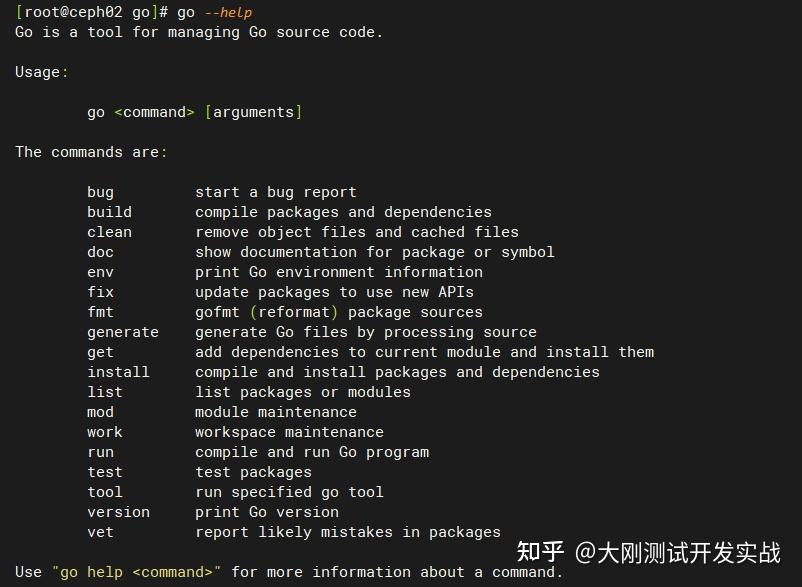 go --help呈现以下信息暗示安拆设置装备摆设胜利: