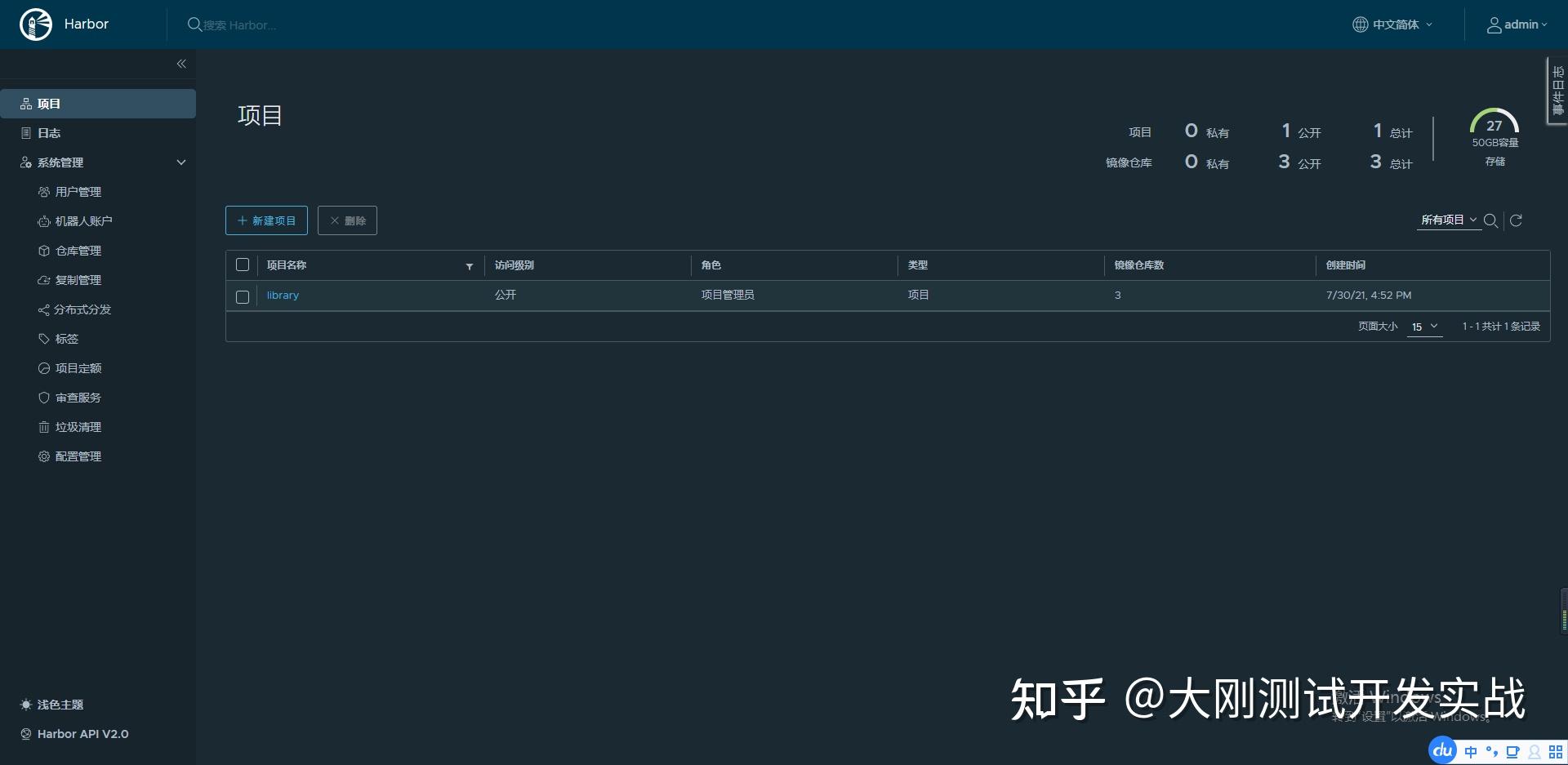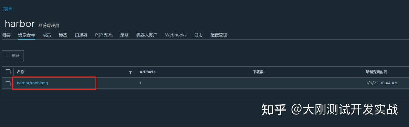 查看名为harbor的项面前目今,存在rabbitmq:3.7-management,测试胜利。
