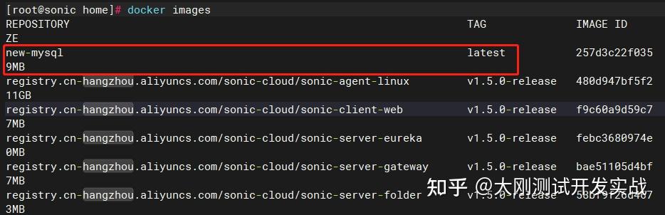 docker commit -a "chenjigang" mysql new-mysql通过"docker images"号令查看当前镜像列表,能够看到名为new-mysql的镜像:
