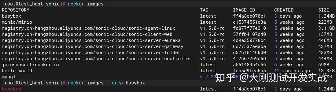 docker images # 查看所有镜像 docker images | grep busybox # 查看指定镜像