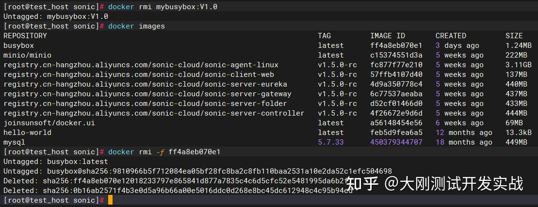 docker rmi mybusybox:V1.0 docker rmi -f ff4a8eb070e1