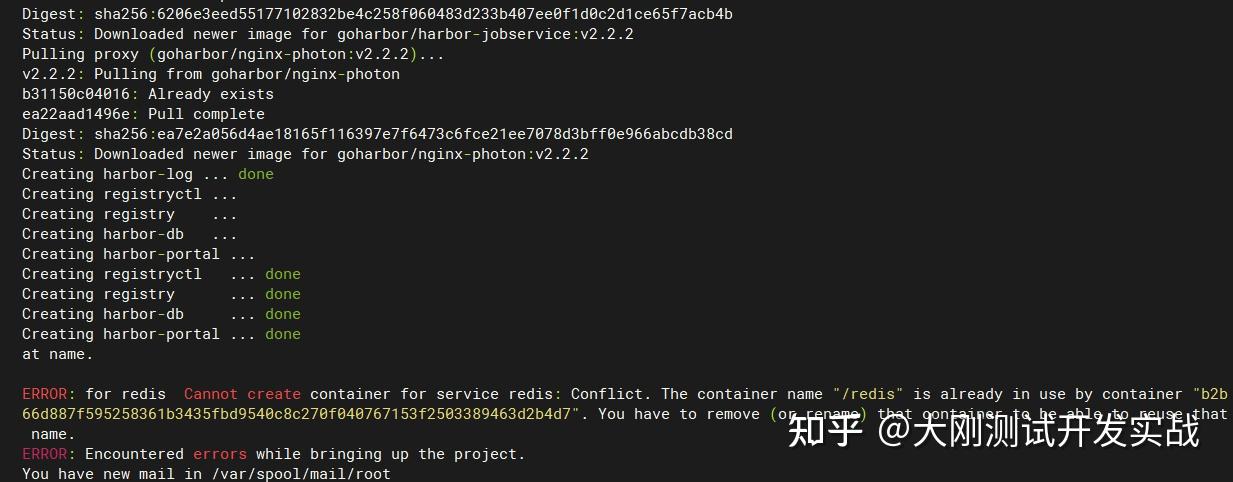 原因:当地已存在redis容器,harbor无法启动redis容器