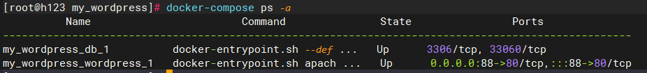 docker-compose ps # 查看所有办事形态,类似于docker ps -a