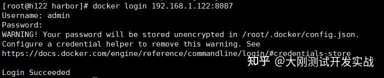 docker login 192.168.1.122:8087初次登录,按照提醒输入harbor用户名及密码即可,与前端登录利用的账号密码一致。
