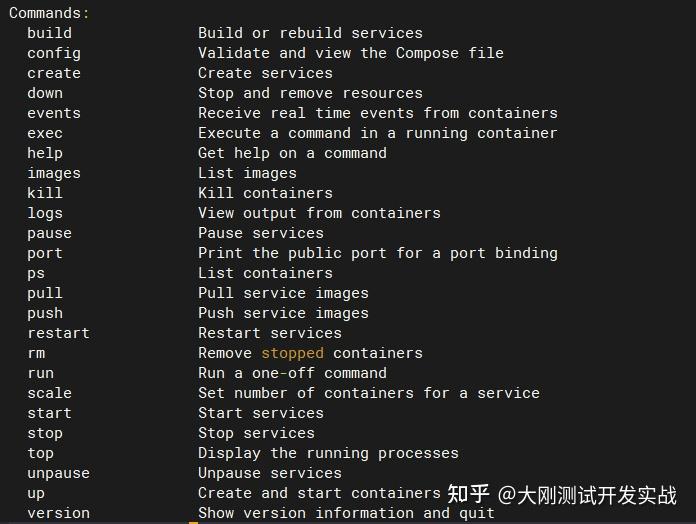 # docker-compose stop [options] [SERVICE...] 停行指定办事
