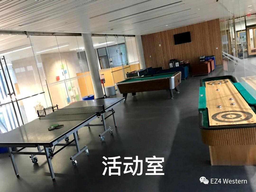 藏书楼里面有cafe shop ;活动室;健身房,进修累了的同窗,能够去放松一下~活动室,能够打乒乓球、桌球。