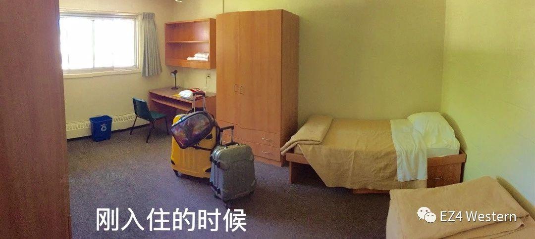 那个是刚搬进去的时候的样子:一张床,一个柜子,一个桌子标配。