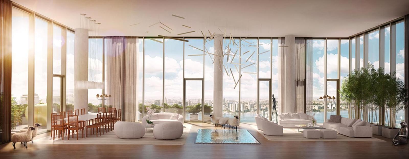城S豪宅(奢华大平层)与独栋豪宅比拟,四周没有那么多海、湖、山,一般会选择依公园和江而建。