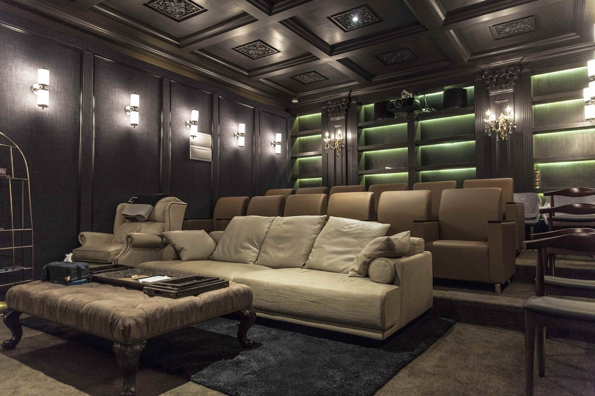私家影音室温馨宽阔的仆人沙发,亲友老友也能感触感染豪华的不雅影座椅。但沙发并非亮点,独一留住我目光的是FENDI CASA的地毯(价值约100万)。