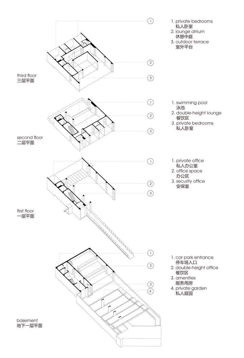 整个建筑群下挖了一层,在中间留出一条或宽或窄的室外空间,层层叠叠的室外平台,让人其实不觉得本身所处的空间是-1层(至少我那么觉得),即所谓的“多首层”。
