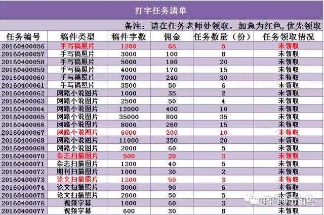 在谈了各类介绍后,他发给了我一份使命清单,每个使命都配有字数几佣金几:
