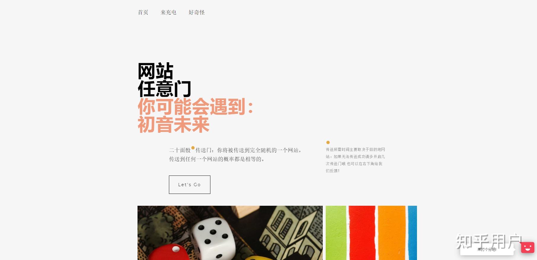 网站肆意门,你可能会传送到初音将来,也可能会传送到一群狗狗,亦或者是其他的工具,满满的新颖感。