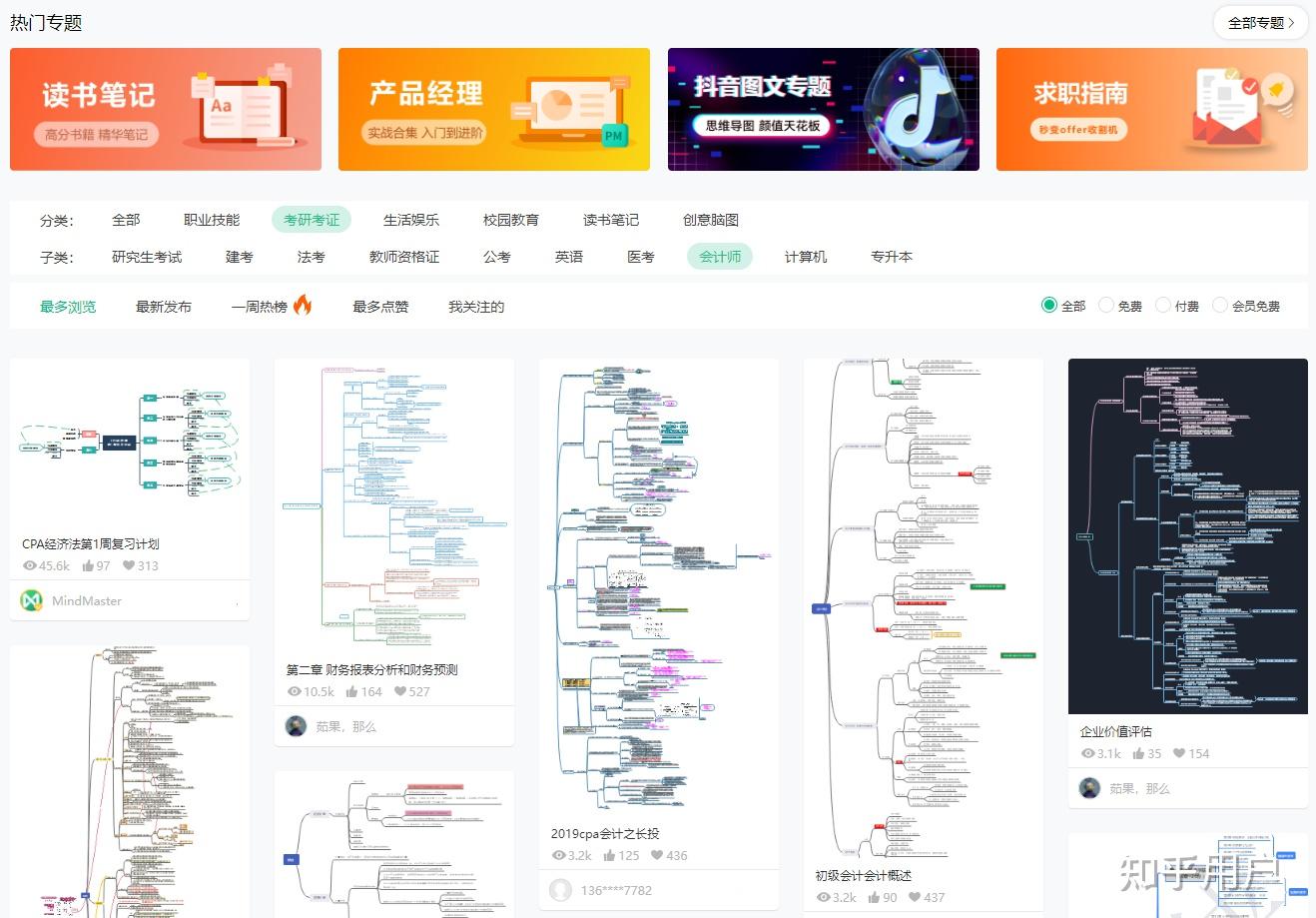 ③海量思维导图复习材料,能够免费查看!涵盖职场(电商、运营、产物等)、考证(管帐、法考、教资等)、学生(考研、高考、中小学)、读书条记等等~