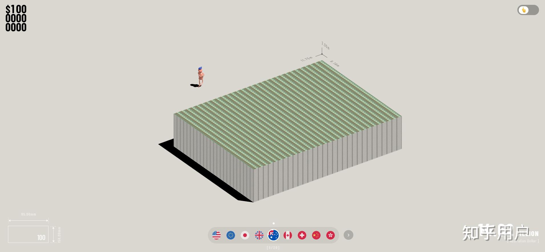 让你曲不雅感触感染到100亿现金体积有多大,有20种现金能够选择。