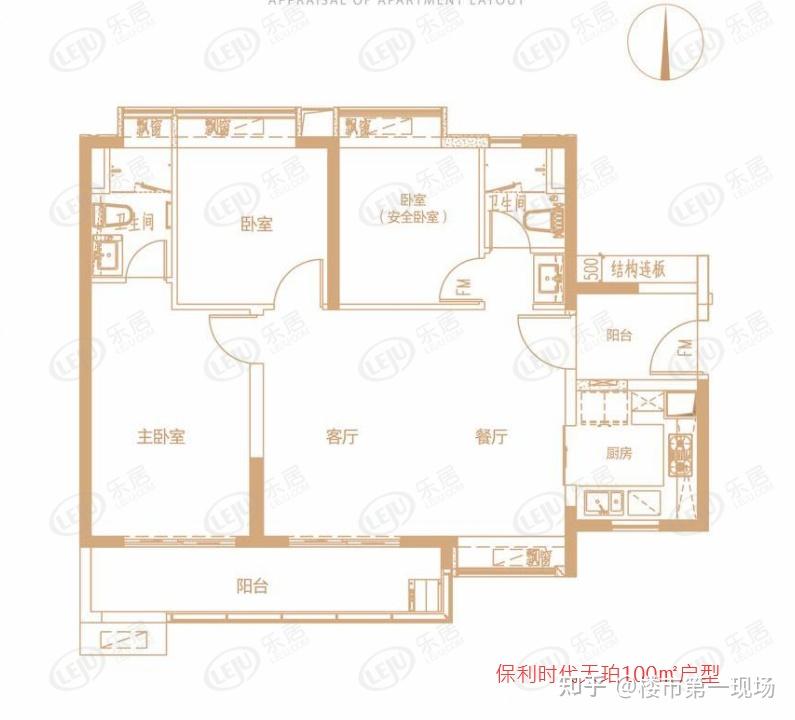 ⑧户型:从户型来看,同济府94㎡三房为南向(也有北向的,建议选择南向),竖厅规划,朴直适用,带有生活阳台,根本问题不大,且保利置业的品量相对较有保障。