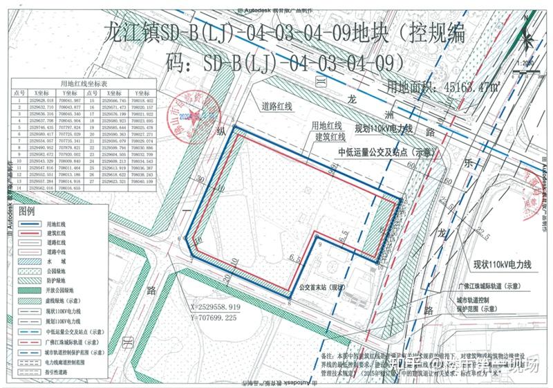 据此前的规划,该线路有路过龙江并设站,小编从片区控规+本年龙江出让地块信息中也能够揣测,广佛江珠城际从信业地块(即龙悦山河东侧)的东边路过,南下不远在龙江中心南区与肇顺南城际