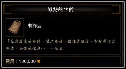 暗黑3中别的有一件和维特相关的道具,同时也是开启隐藏关的道具之一:维特的牛铃。不外在暗黑3打消了奶牛关的设定,而酿成了愈加欢乐的彩虹关……