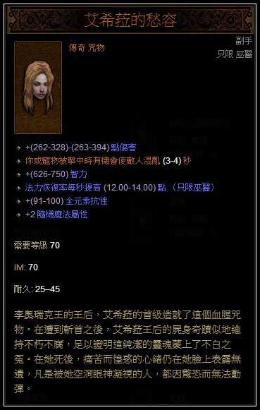 而在暗黑3中,有着李奥瑞克传说的配备愈加多样。同样,配备描述中也能看出李奥瑞克生前的故事。别的值得一提的是,艾席拉的故事在配备中也有表现:艾希菈王后的头颅成为了一件巫医副手的咒物:艾希菈的愁容。