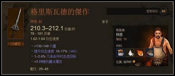 暗黑3中的橙色兵器“格里斯瓦德的杰做”,由铁匠打造