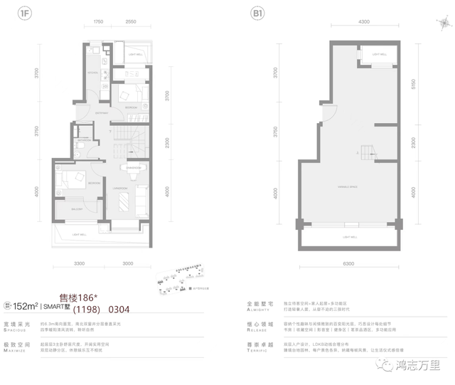 150-280㎡ smart墅 :530-1000万起 散布所有楼栋1层,共70套