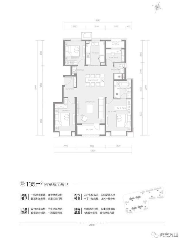 135㎡ 四室两厅两卫:800万起 散布2# 3# 12# 13#