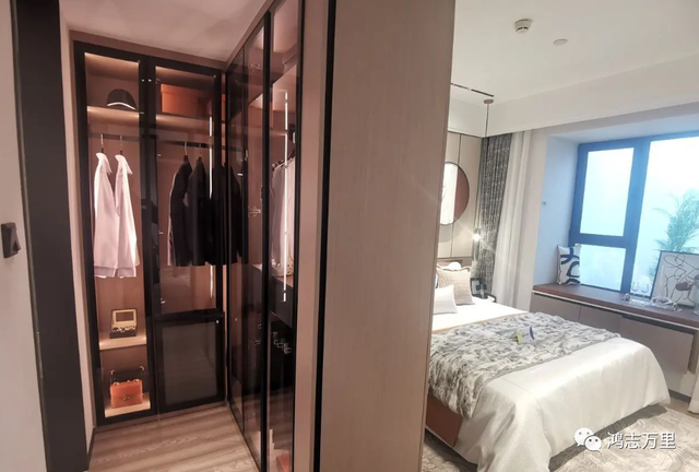 96平米三居进门处有一个步入式空间,可摆放200多双鞋。里面的消毒功用也是拆好的;甭管户型大小,全数都有零丁的家政空间。餐边柜、卧室的衣柜等虽说不是交标,但预留了足够的空间。