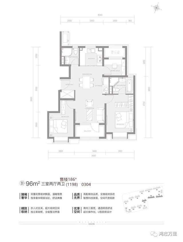 96㎡ 三室两厅两卫:560万起 散布8# 9# 10#