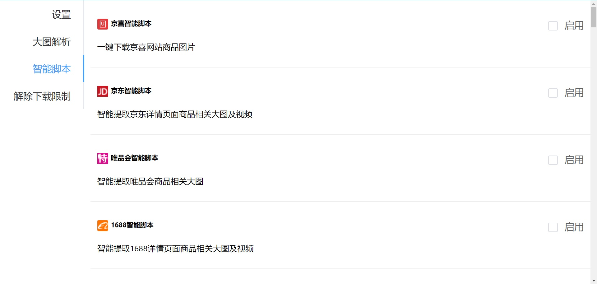 Fatkun 还内置了一些出格适用的脚本,例如天猫、淘宝商品图一键下载、B站和腾讯漫画一键下载等等。