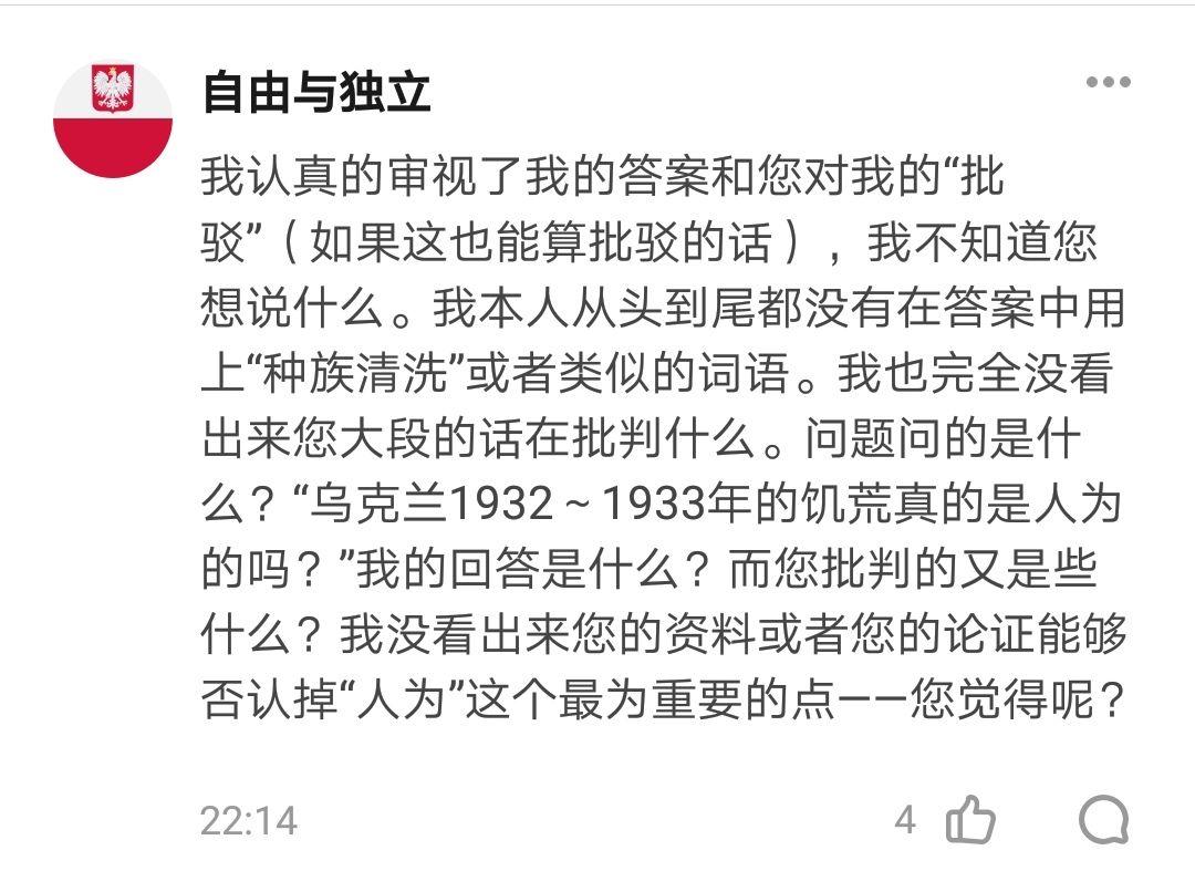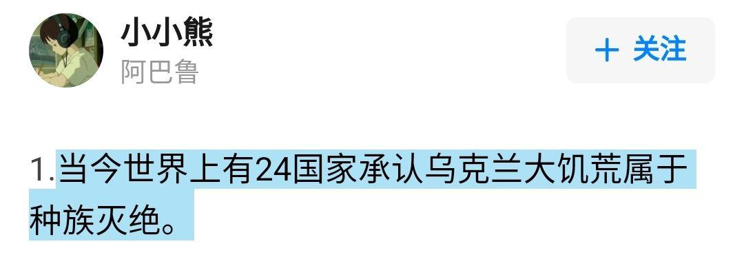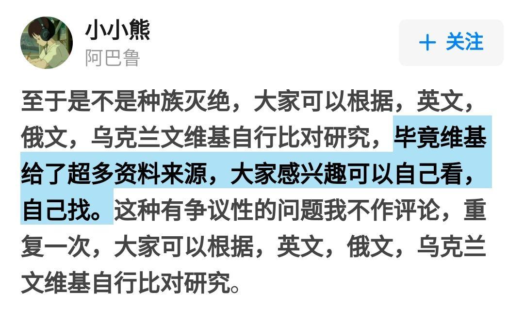 对啦!就是那句:“我的谜底从头至尾都没说过乌克兰大饥荒必然是“种族清洗”或者“种族灭绝”,也历来没暗示过我认同那种概念。