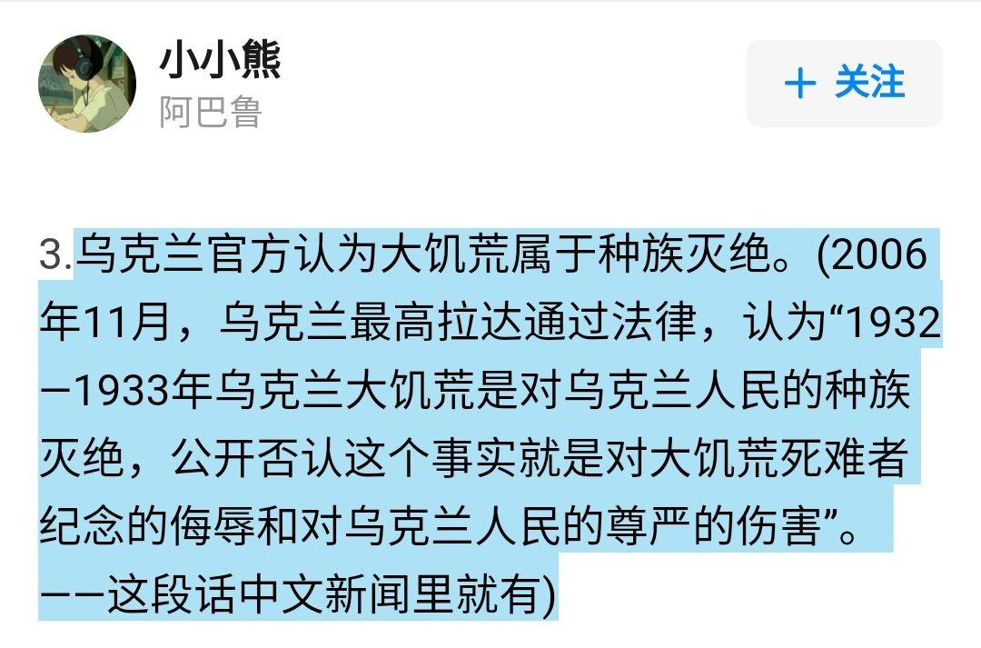 国际上大都国度都不认为乌克兰大饥荒是种族灭绝,不克不及改动那一现实,别说小小熊,乌克兰更高拉达就是反复一万遍,也啥用没有。